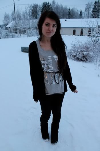 Eli tämmönen perushuone, loppuun parit naamakuvat parilta päivältä. Koulussa tänään päällä oli Ginasta tommone paljettitoppi, niinkun yhdestä kuvasta saattaa huomata :)! Ihan perus farkkulegginsit, velourhuppari ja toi ginan raidallinen tuubihuivi. Ja sunnuntaina ois tarkotus men laskettelee pitkääästä aikaa kivaa :-) Pitäkää hauskat viikonloput!